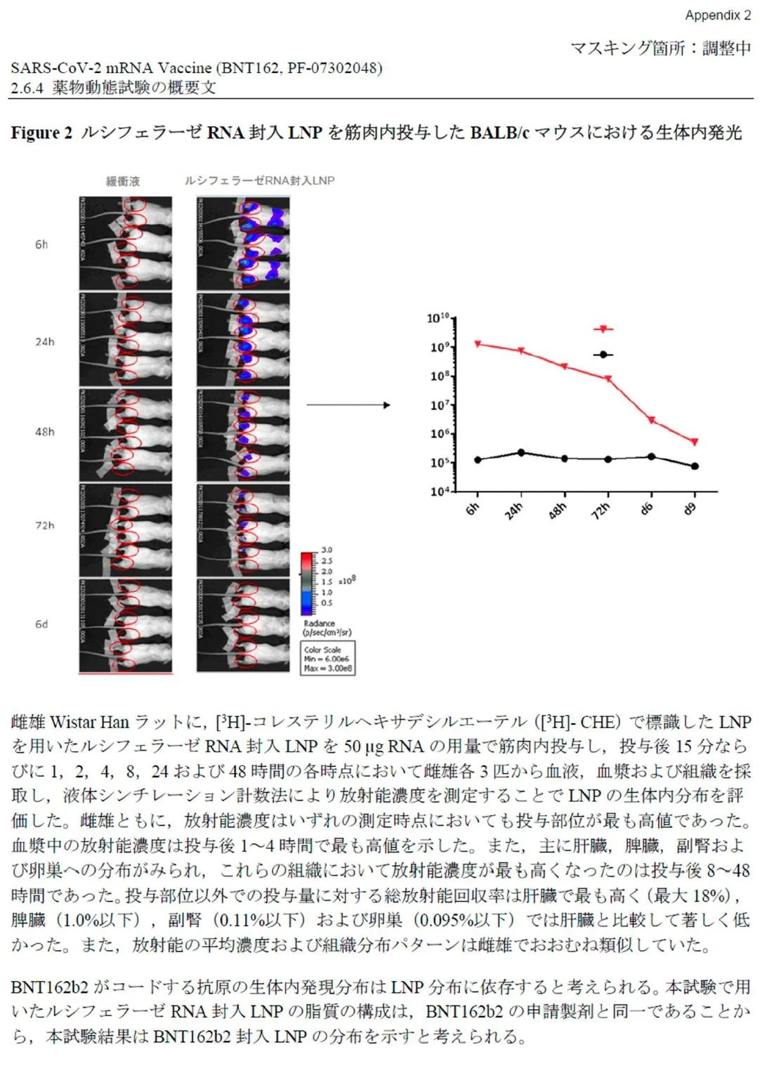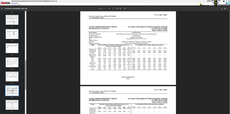 4. Prior to the FDA releasing these two common technical documents describing the biodistribution studies, a single document that provided descriptions of both studies had been submitted by Pfizer/BioNTech to Japan’s Pharmaceuticals and Medical Devices Agency. The Japanese government had made this document publicly available on their website.