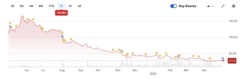 It had previously reached a high of $454. Now it stands at $27. That’s what is called a freefall. No government money is there to rescue the stock. Nor can the company rely on forced consumption in the form of vaccine mandates, all of which have been repealed.