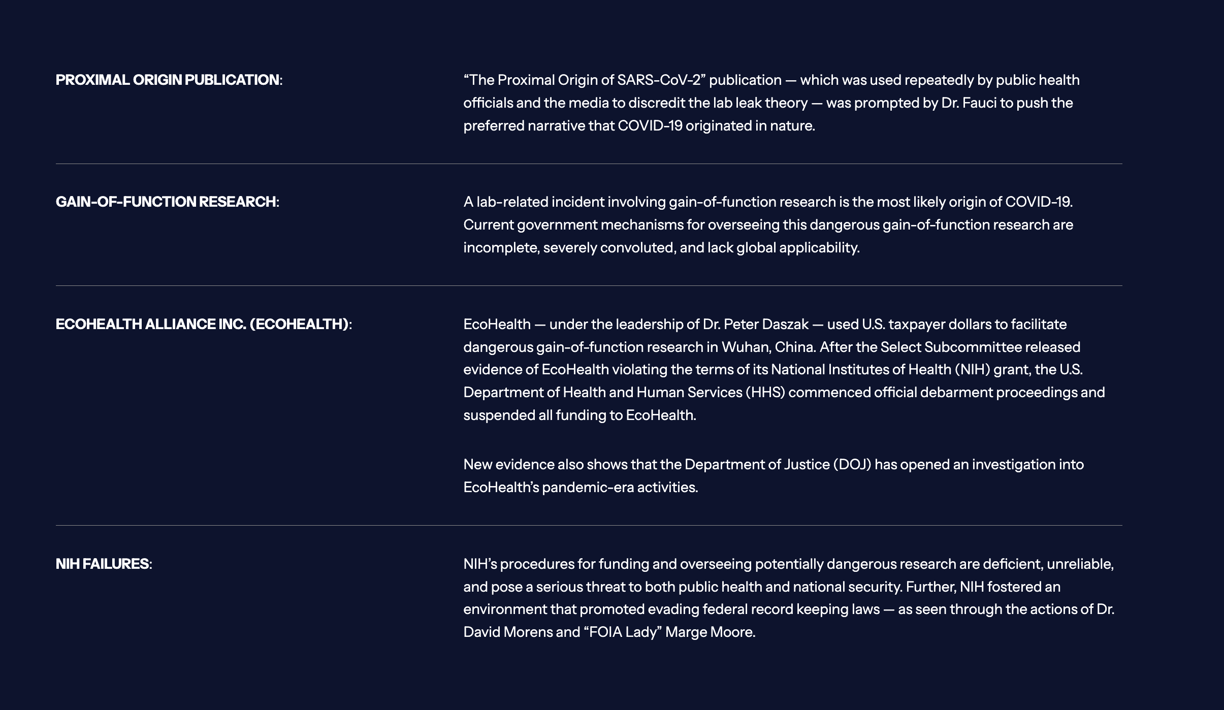 The White House webpage says all the quiet parts (about the origin of the virus) out loud. Below are images cut from that site: